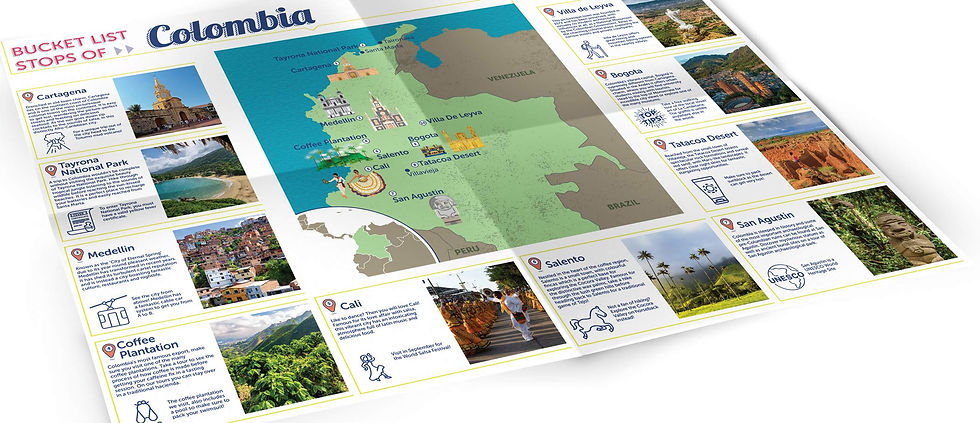 Initially I was briefed that I was to come up with a mini brochure to capture the reader on three of the companies top three countries to travel to. This then developed into creating an informative guide which the reader could also keep, so why not create a large visual peice that could be kept up on their wall with examples of the highlights within each of these countries.